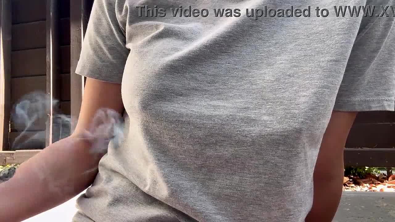Italian big tits smoking outside 😍