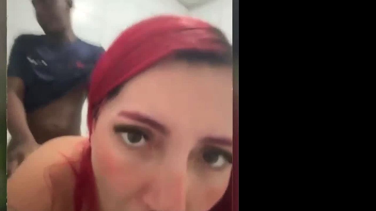 Putinha takes anal creampie bent over in public toilet video call deepthroat